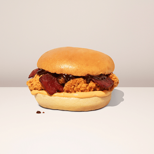 Soft Burger Bun, dripped mit 2x Loco Filets, Crispy Halal Bacon, Hot Mayo und BBQ Sauce